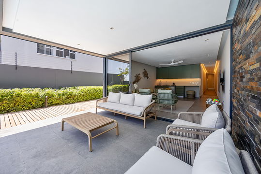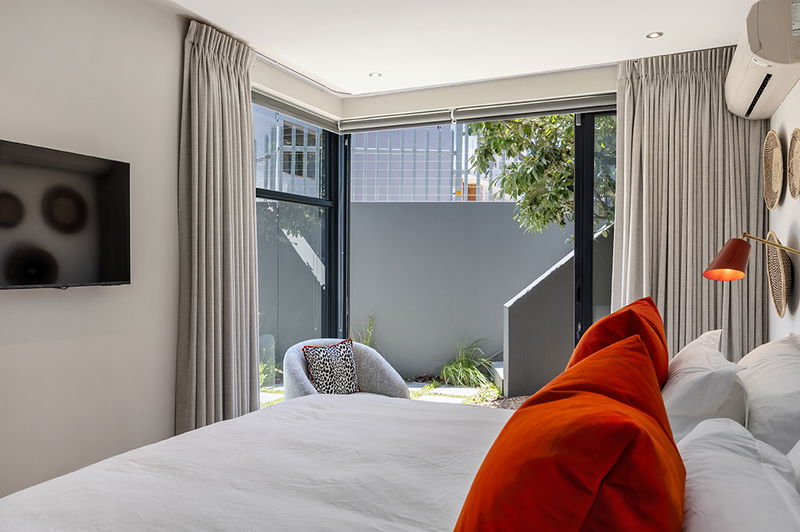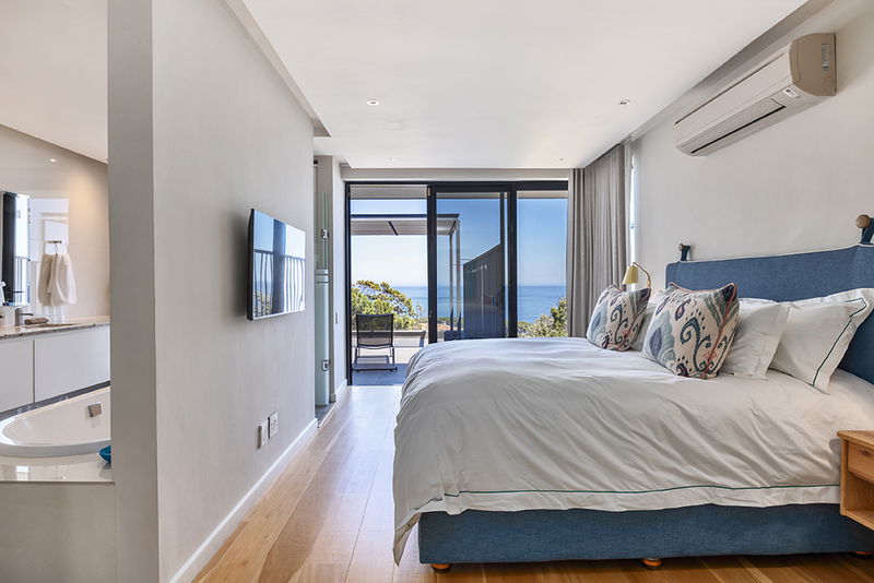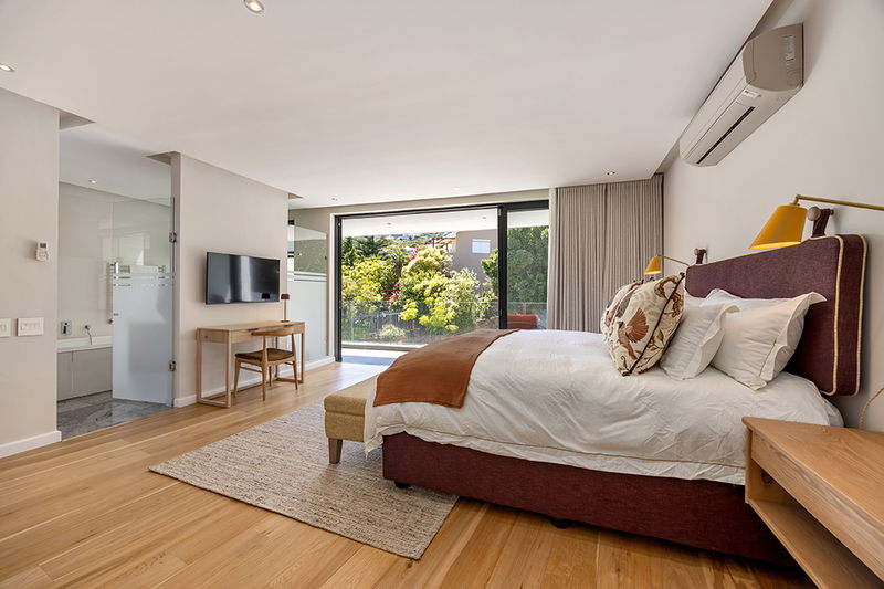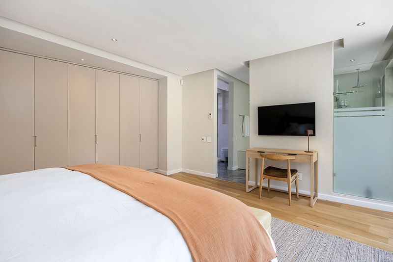 Camps Bay Rox comprises of four generous en-suite bedrooms that scatter themselves across the three levels of the villa. Two with king-sized beds, and two with queens open out onto their own terraces or views out to the garden. With a lovely swimming pool for those morning and afternoon dips. A gas braai with comfy seating and lounging areas make it an inviting setting for relaxed outdoor gatherings, accompanied by the rhythm of the sea and the gentle mountain air flowing through interconnected terraces.