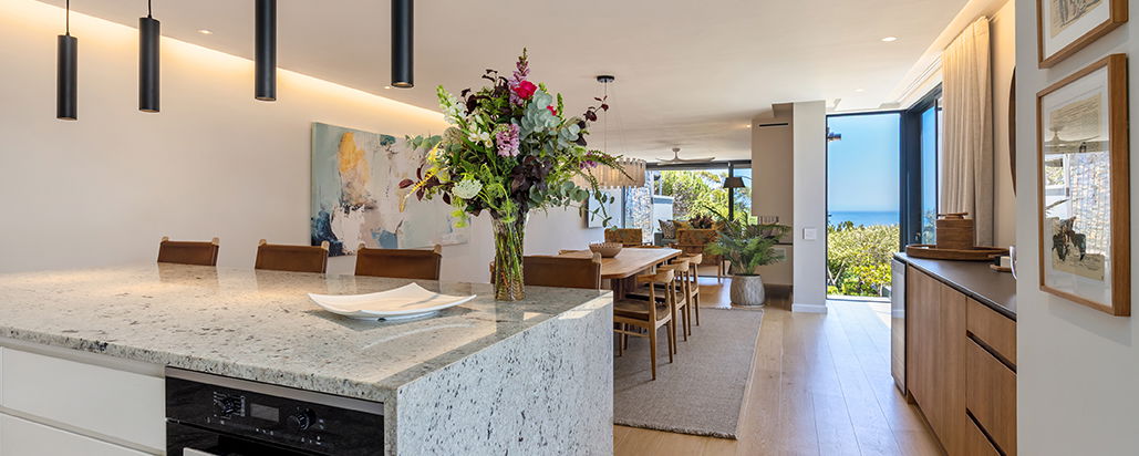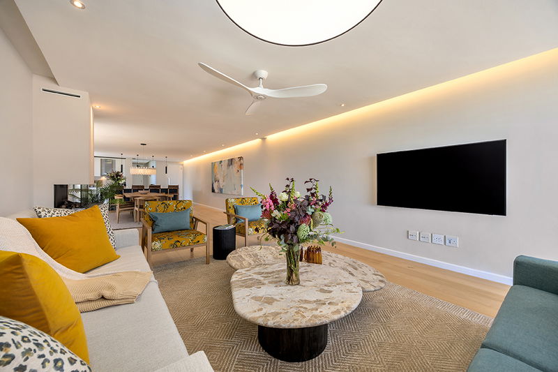 Few coastal districts in Cape Town command admiration quite like Camps Bay. Its allure is entirely deserved with the abundance of lavish private residences that cling to the mountain’s slopes. Descending along graceful, meandering roads towards the shoreline. A fashionable promenade of eateries, cocktail lounges, and designer shops buzz with activity. Guiding visitors past cafés and gelaterias, to pristine sands and hidden tidal pools. Amid this landscape, some homes announce themselves with theatrical flair, while others reveal their beauty with a humble poise.