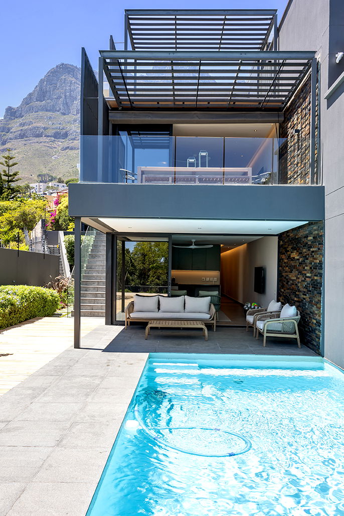 Poised above the main stretch of Camps Bay beach, settled along a quiet residential road, gazing across the endless blues of the Atlantic, Camps Bay Rox invites you in to a suburban, coastal retreat, exuding its contemporary character. Encircled by the Mother City’s dramatic natural scenery, the villa delivers views of Lion’s Head, and the peppered slopes that surround the city’s wilderness.