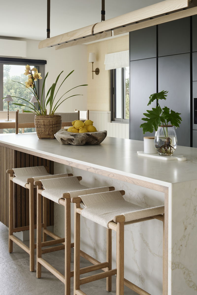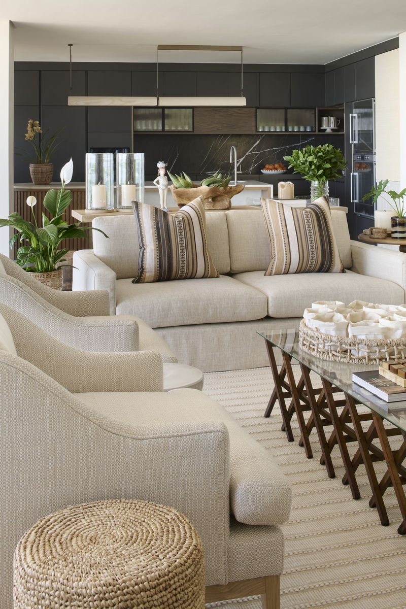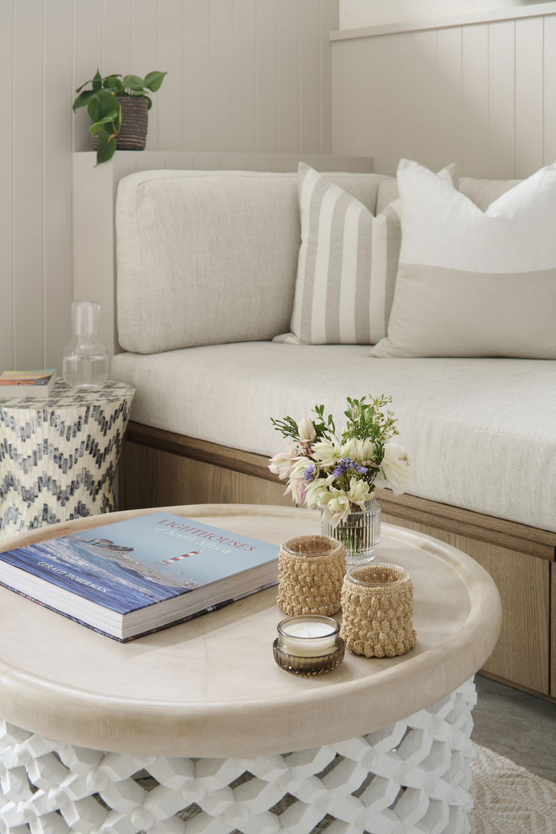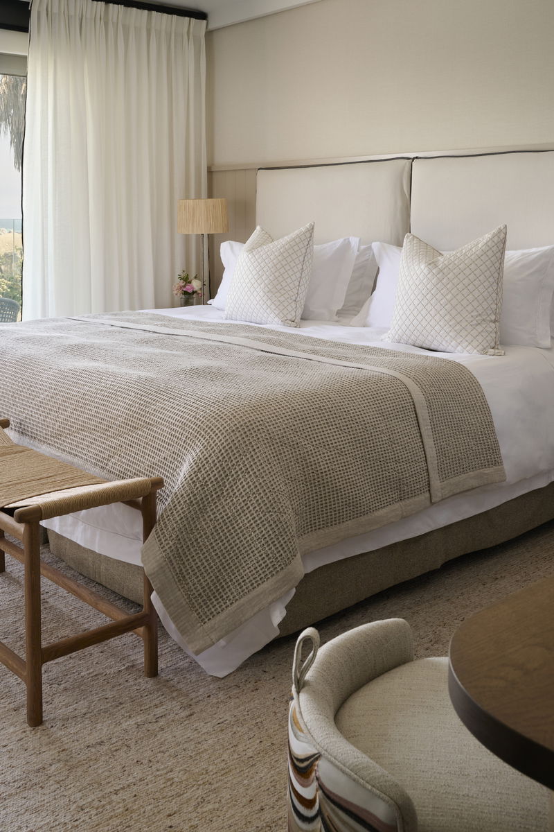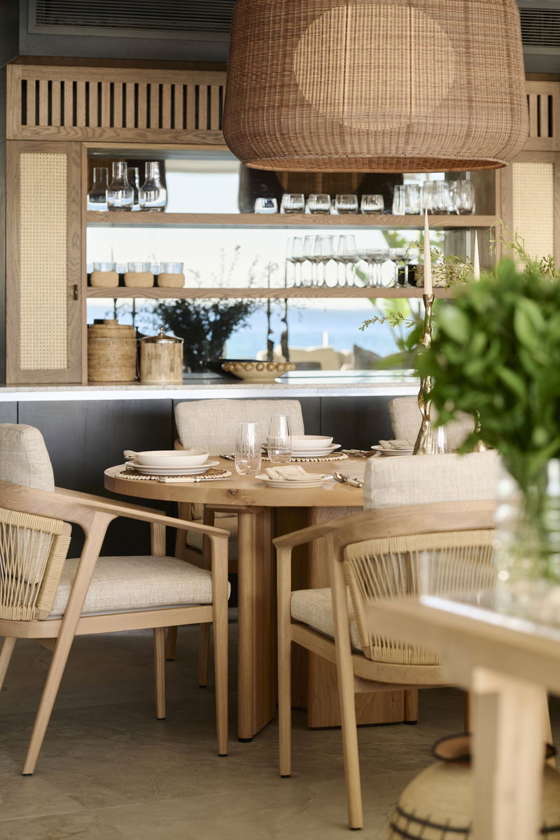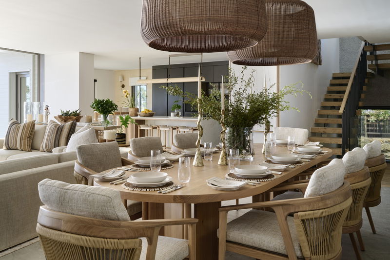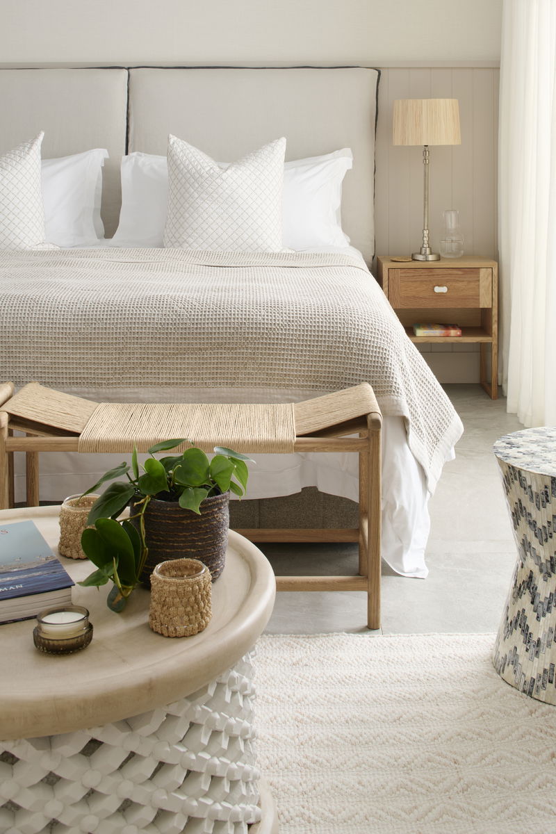 Inside, the villa is calm and considered. The interiors blend soft textures, sculptural forms, and natural materials in a palette of warm neutrals and coastal tones. Every space is designed to feel relaxed yet refined, layered, tactile, and quietly luxurious. The villa features 5 bedroom en-suites, accommodating 10 pax, 1 lounge, 1 playroom, kitchen, dining area, outdoor lounging & private pool, access from the garden directly onto the beach.