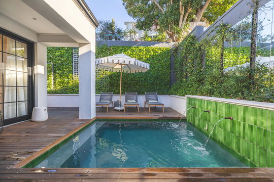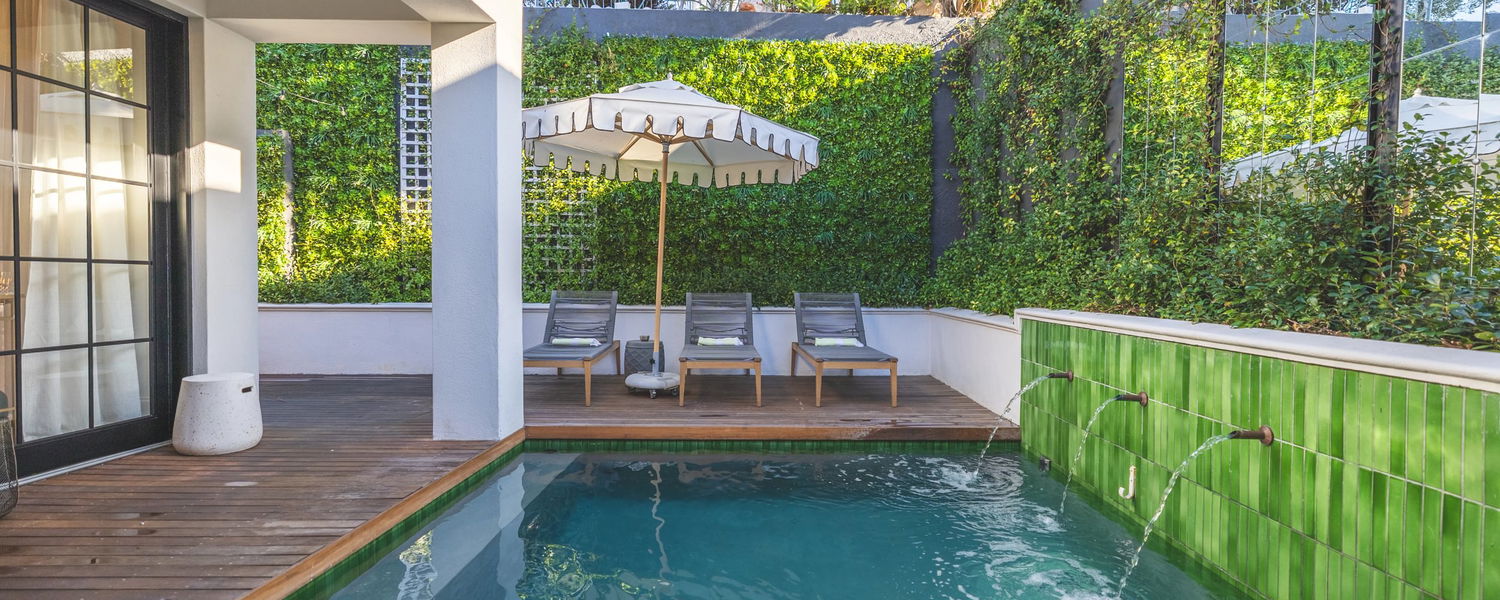 Décor is classically retro-chic with a subtle Cape heritage influence. The private outdoor deck and swimming pool beckon on sizzling summer days and for those seeking seeking some R&R, an in-room spa service is available. The residence is child friendly and serviced daily.