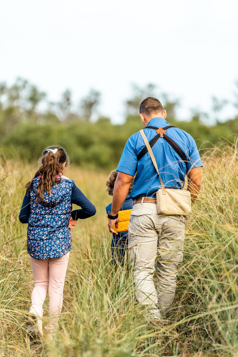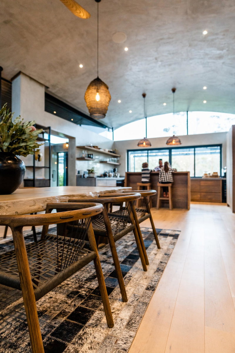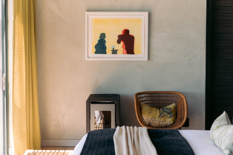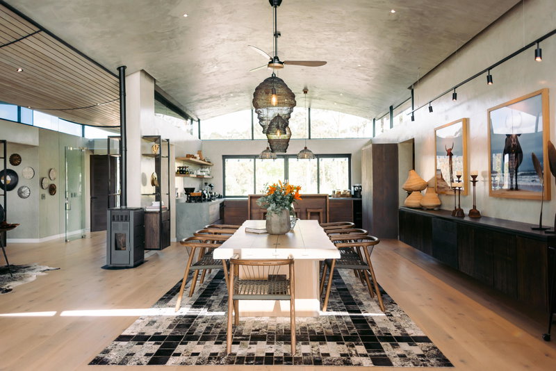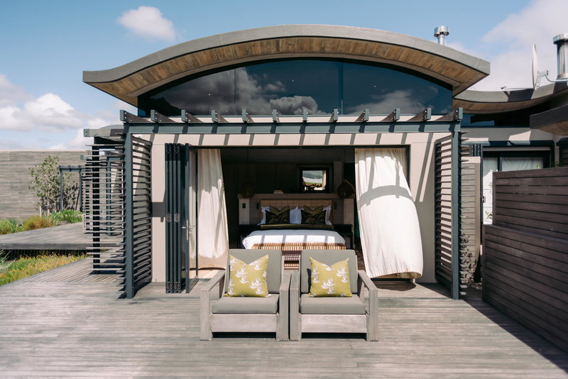 artwork, an infinity pool and a large deck overlooking the lagoon and its birdlife. It provides a luxurious haven