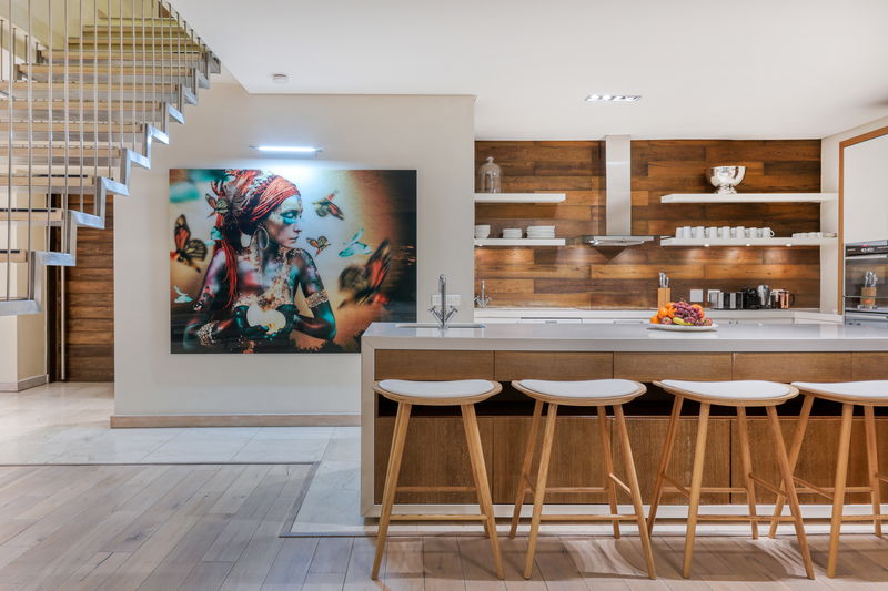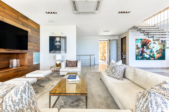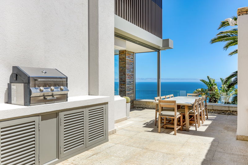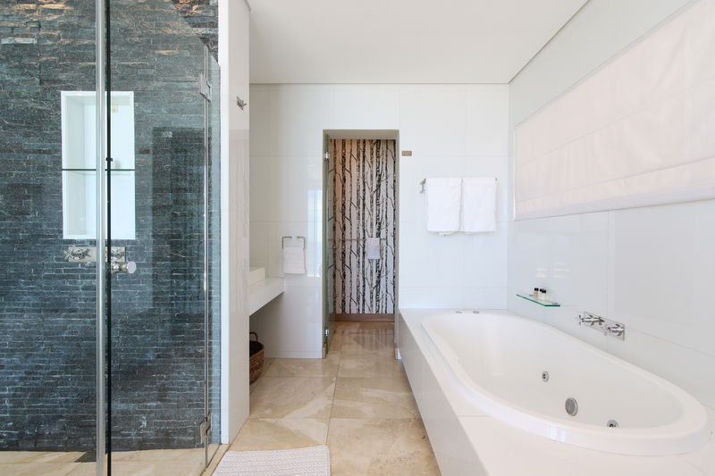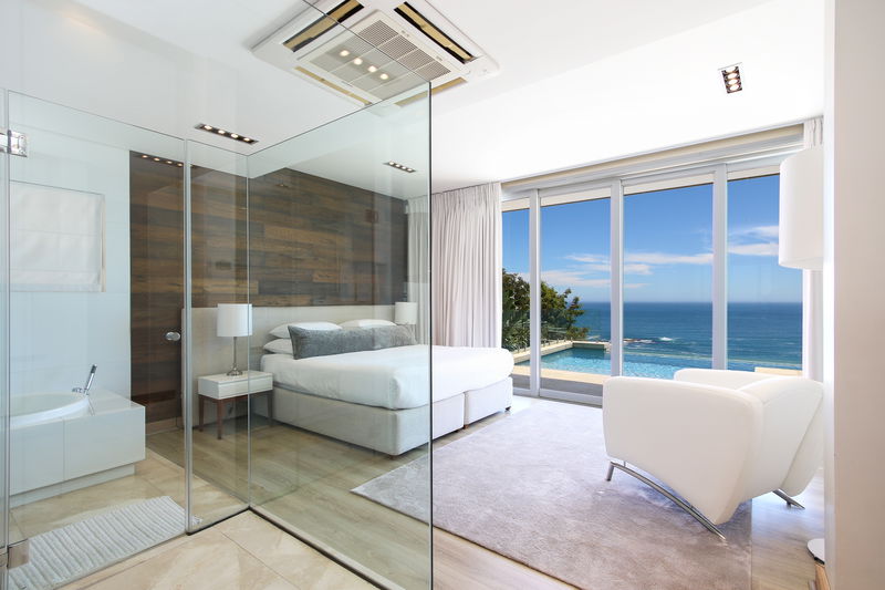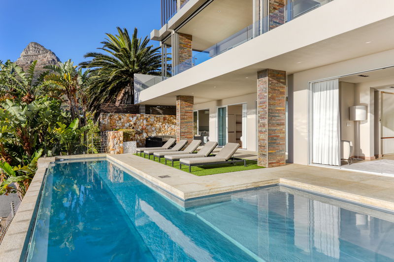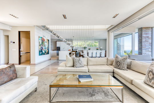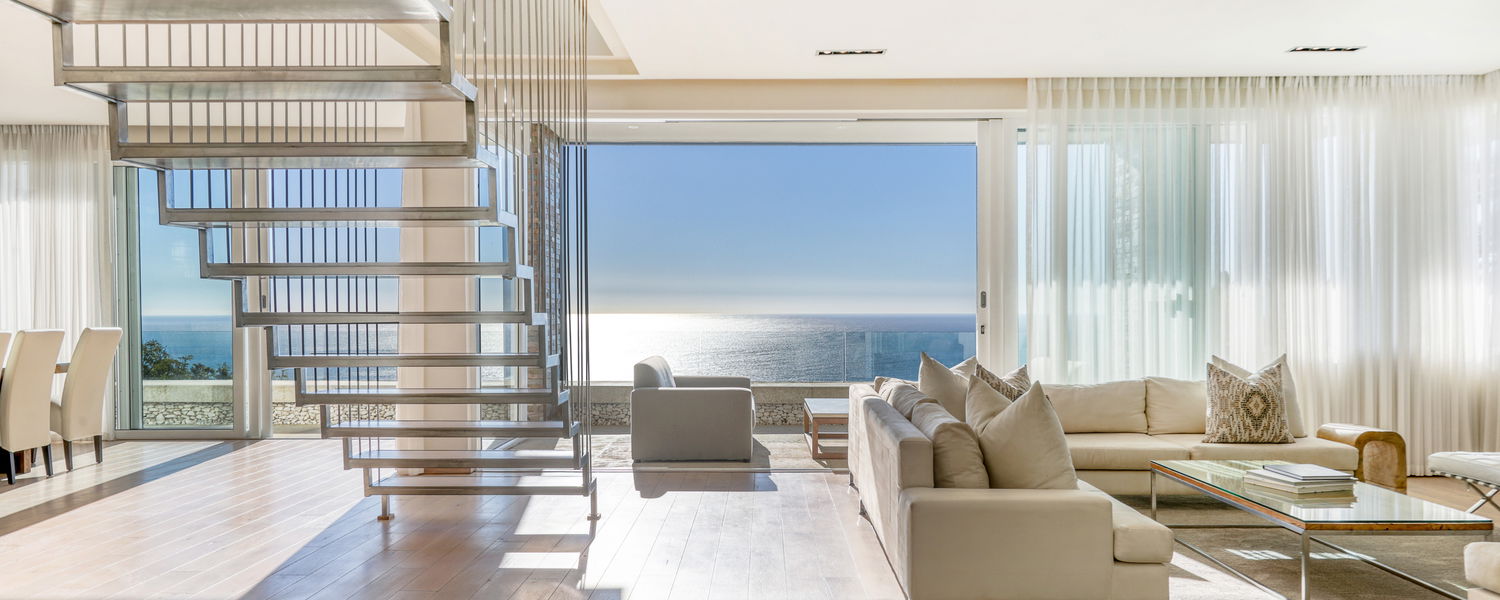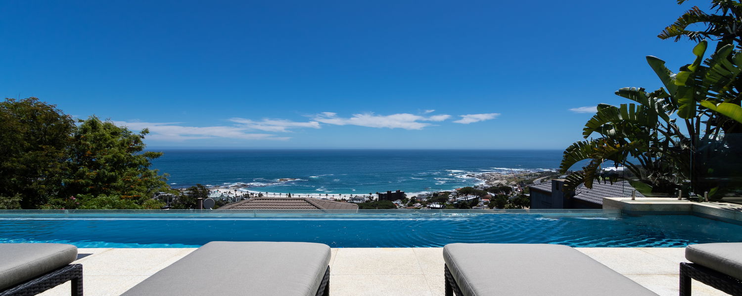 Medburn Villa is an exceptional modern masterpiece comprising 3 light filled levels, perfectly positioned on the slopes above Camps Bay. Each level has a terrace complete with beautiful outdoor furniture from which to enjoy spectacular ocean views from sunset to sundown. Medburn’s incredible vistas can be enjoyed from every room in the house no matter where one chooses to relax.