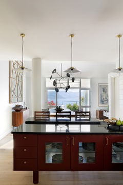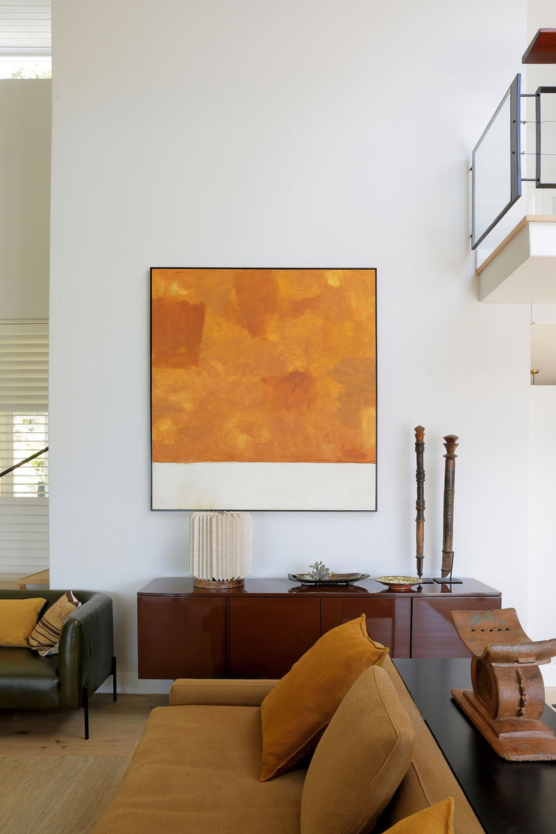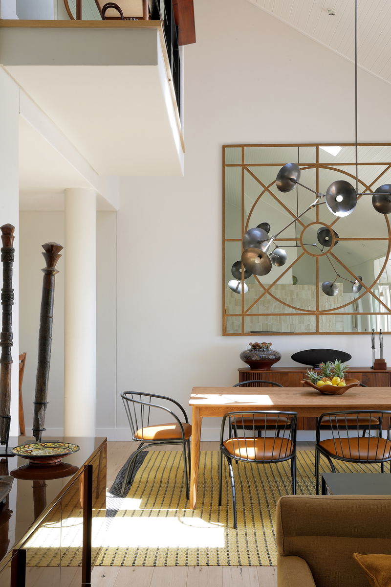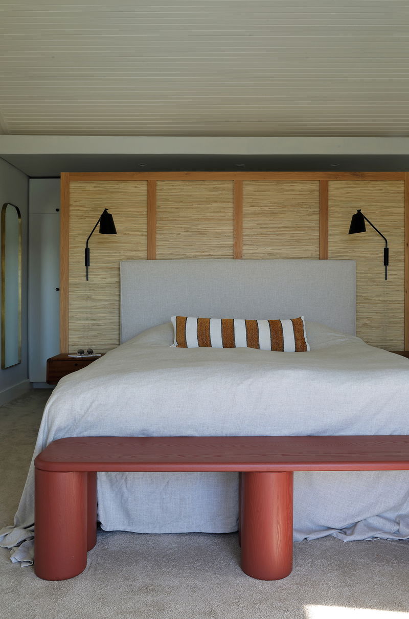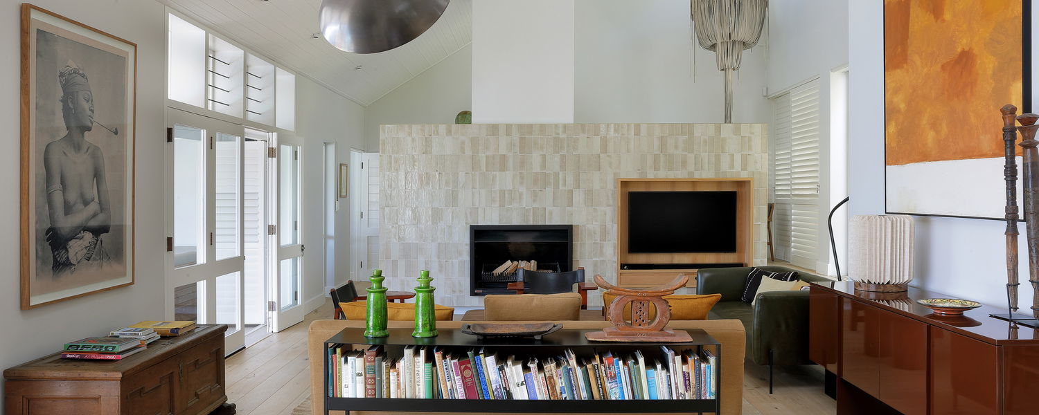 The interiors have been thoughtfully reimagined by the owners of the property. Its design narrative guided by local designers and craftsmen, and anchored by the family’s own discerning eye. This sensibility is expressed in all of the carefully chosen pieces. A brass-topped table by James Mudge, a sculptural pendant above the dining area by Greg Marshall, and High Thorn chandeliers that nod to a bit of drama. Japanese-influenced folding wardrobes, along with a restrained palette of natural tones and tactile finishes, are woven seamlessly throughout the home’s spaces. No matter where one settles, whether it be at the dining table, in the relaxed living spaces, the television room with its inviting sleeper sofa. The sheltered reading nooks or the serene bedroom suites, each room carries its own encouragement to pause, reflect and feel inspired.