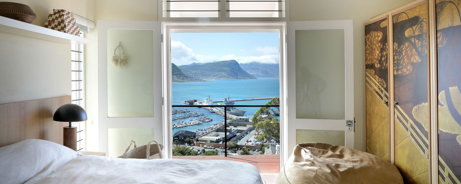 Set high on the fynbos-covered hills of Simon’s Town, The Admiral draws your gaze outwards with its magnificent views. Descending the steps towards the front door, the panorama gradually reveals itself with a breathtaking welcome. The harbour and naval docks below, mountains tumbling towards the sea, and an ever-present expanse of blue stretching in all directions.