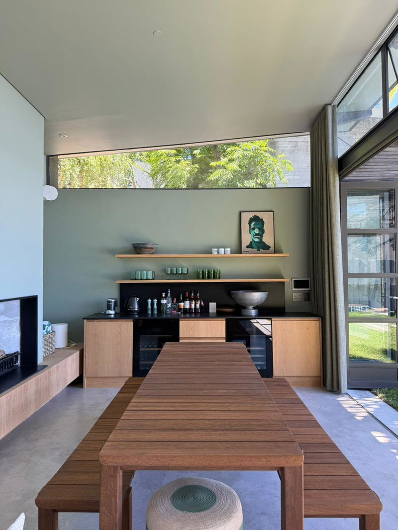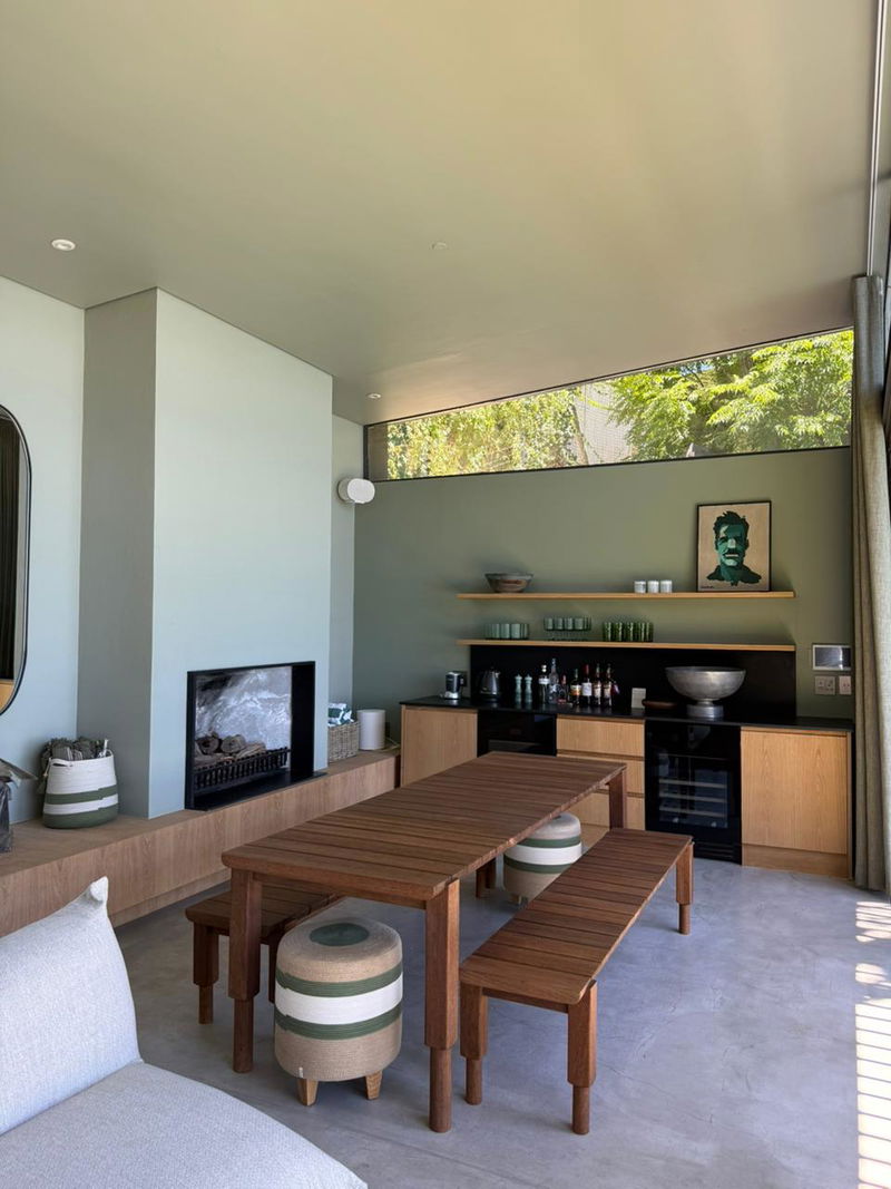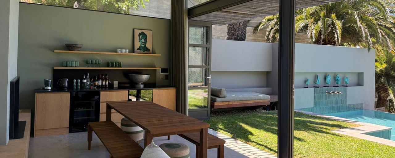 The Green House is aptly named. The tones have been specially custom-formulated to embody the perfect pacifying shade of green throughout the home. Every detailed element of the home calms and invigorates. simultaneously. With its accompanying neutral tones and textures, a vibrant collection of notable artworks and locally sourced artisanal furnishings. The property exudes contemporary sophistication, with an earnest exhibition of South Africa’s inimitable craftsmanship, and architectural heritage.