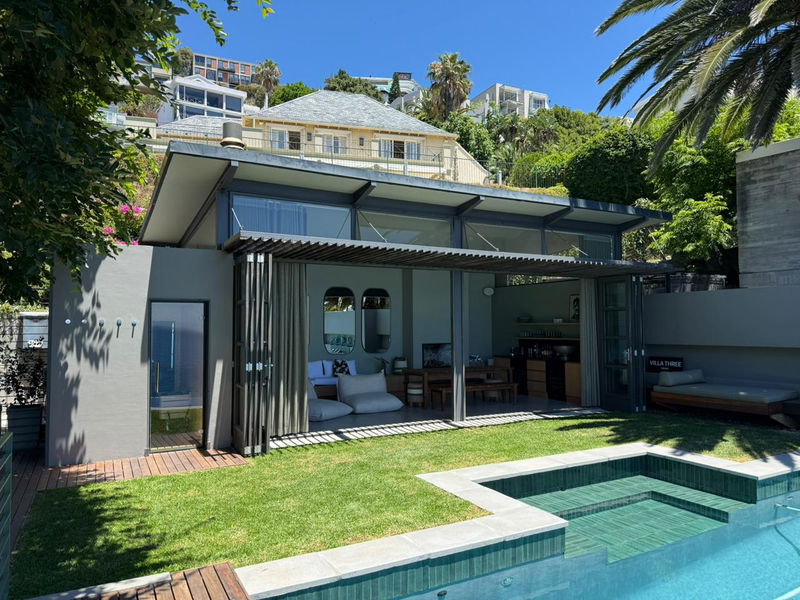 Tranquil reading areas, morning yoga spots and inviting sun traps stagger themselves around the terraced garden. All the way up to the pool house. A fully-equipped entertainment space with enough fridges and ice machines, a built-in braai, and all of the right appliances to spend as many hours as you choose, in and out of the swimming pool. Especially with the spectacular views of the ocean and Robben Island in the distance. There’s a sauna and an outdoor shower, comfy sun loungers and a long table for dining.