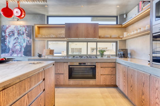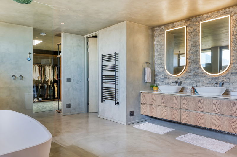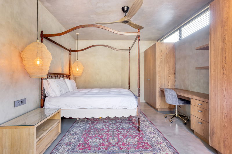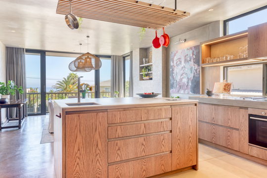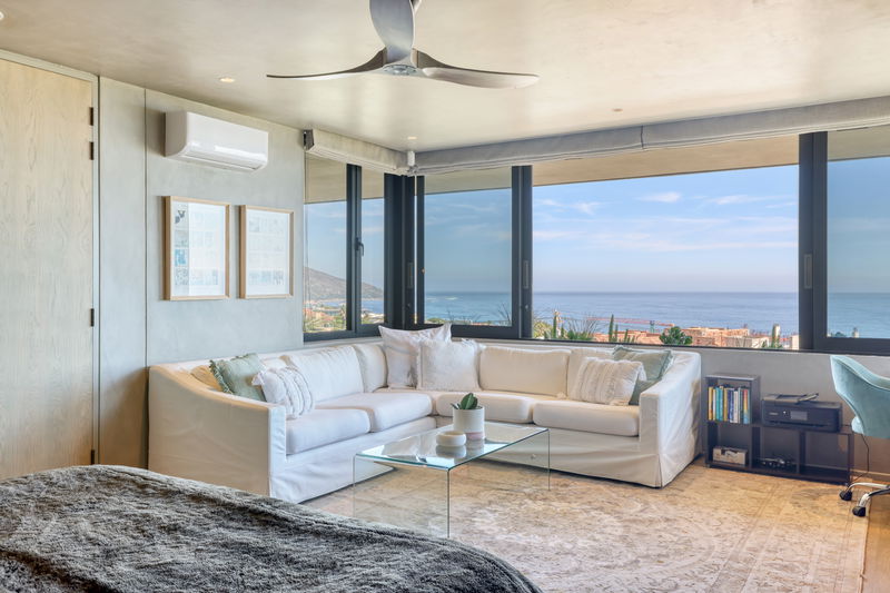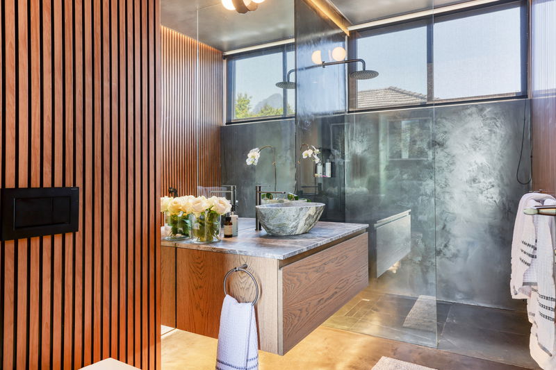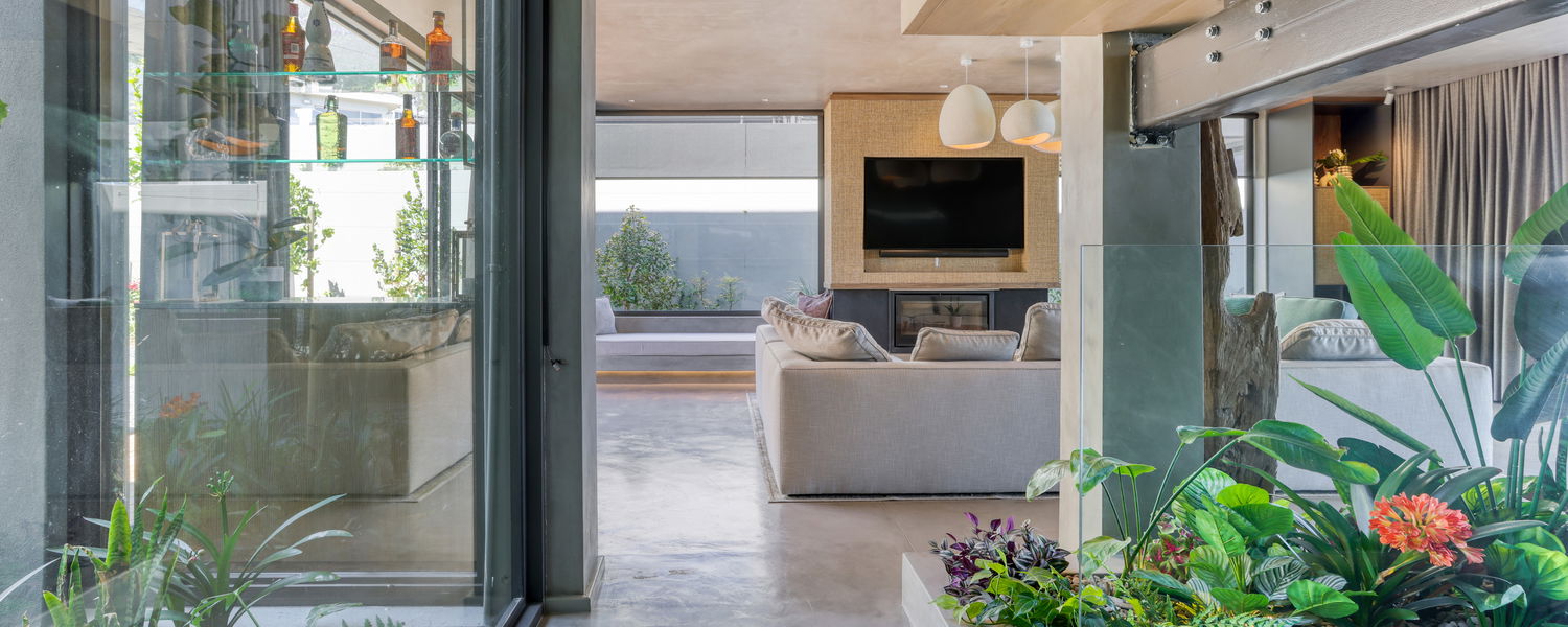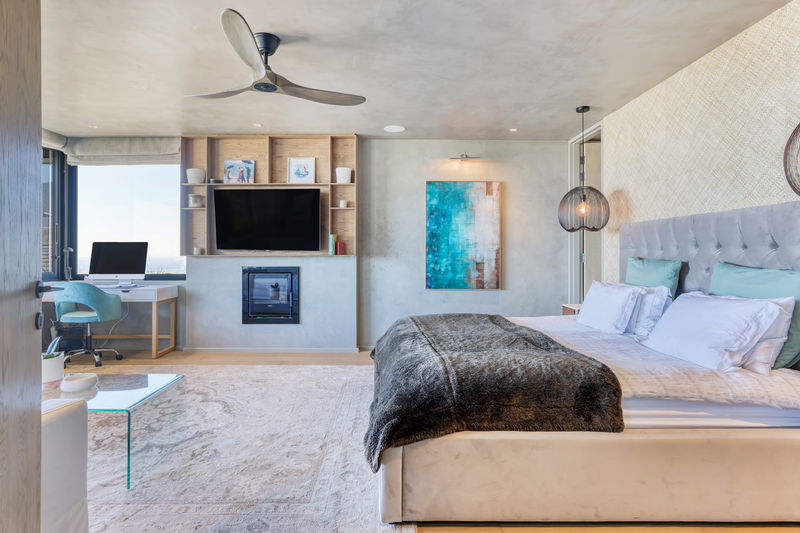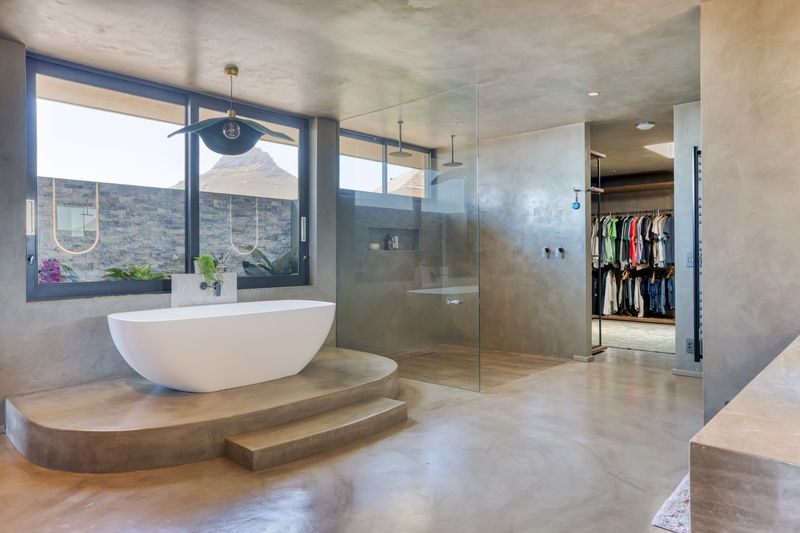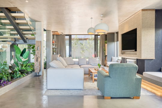 Distinctive features include a private jacuzzi and cold-plunge spa area. Lush interior plantings soften the architecture and bring the outdoors in, while carefully chosen art and materials reflect Cape Town’s design-forward sensibility.