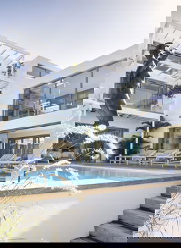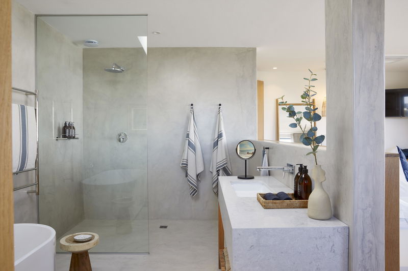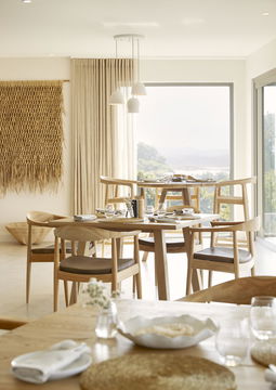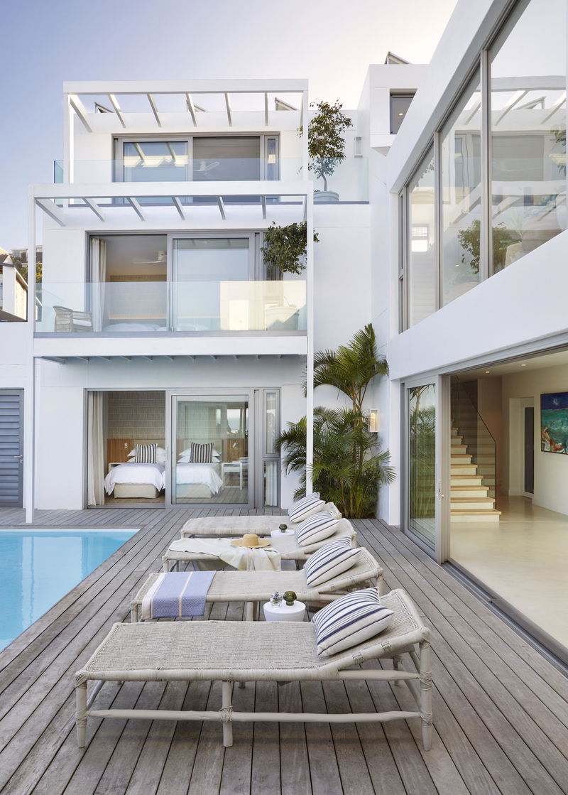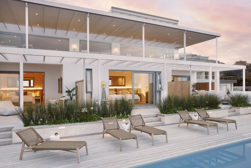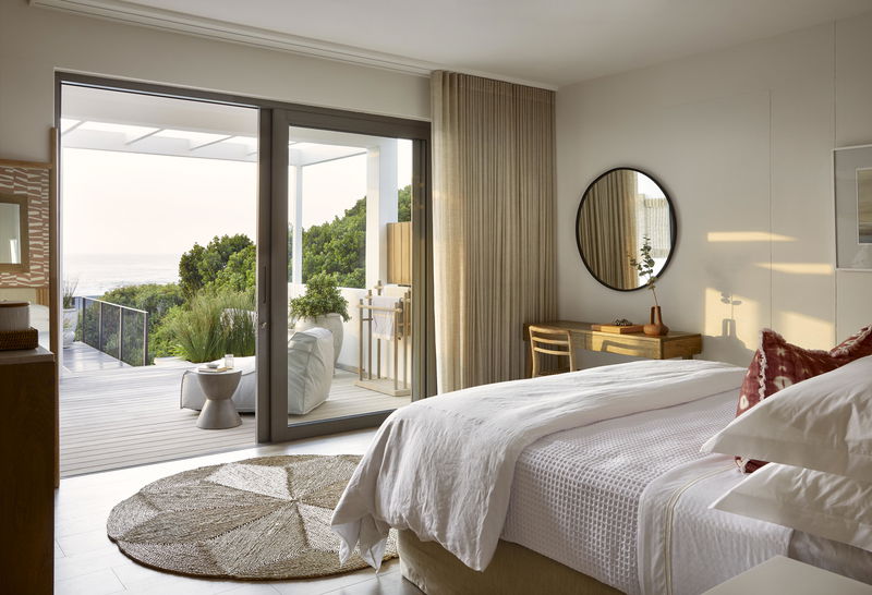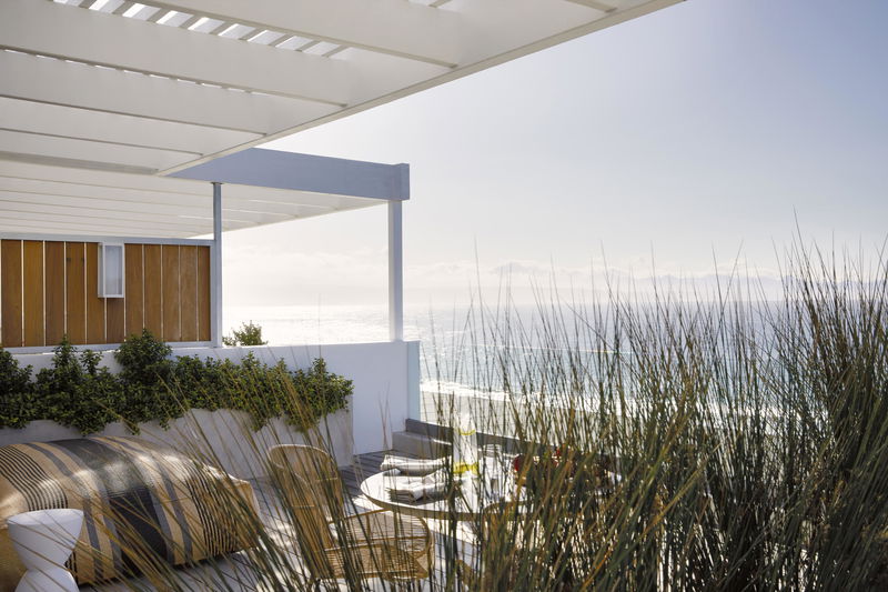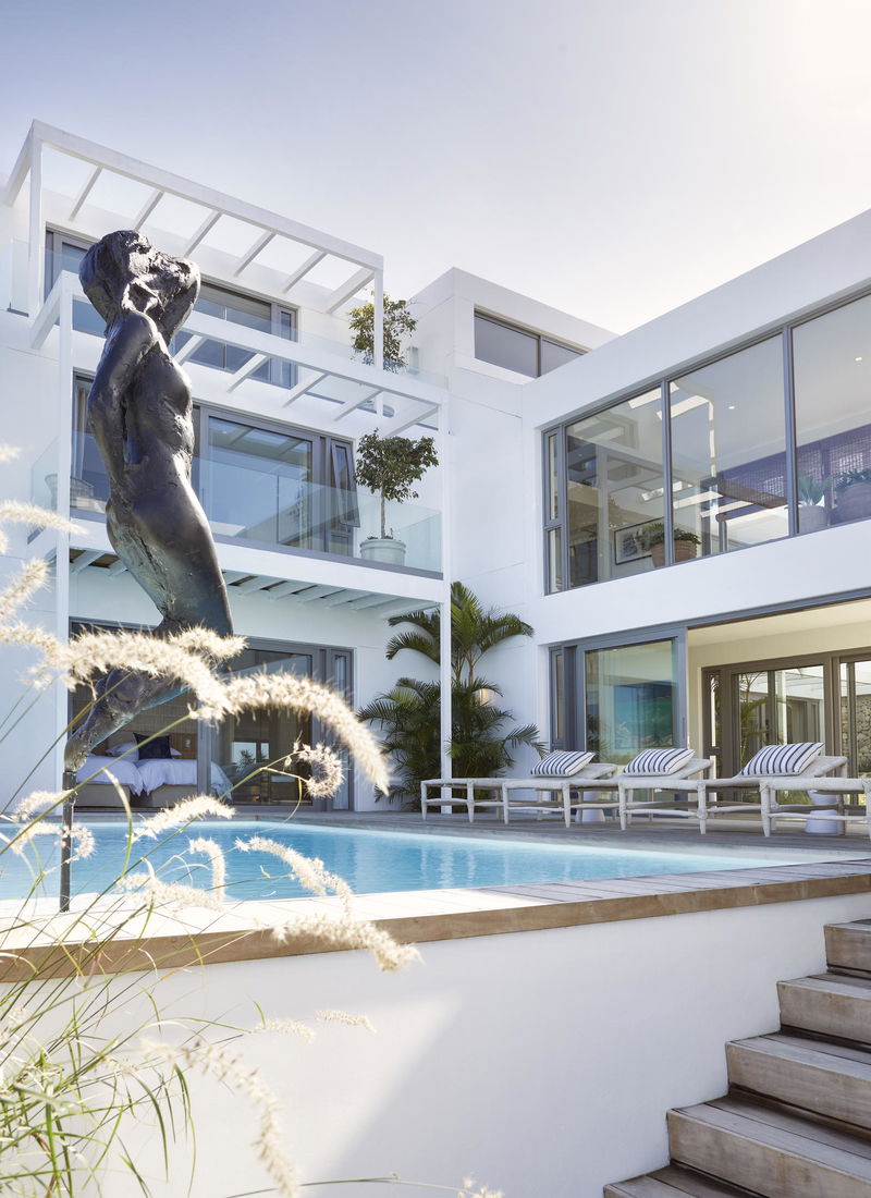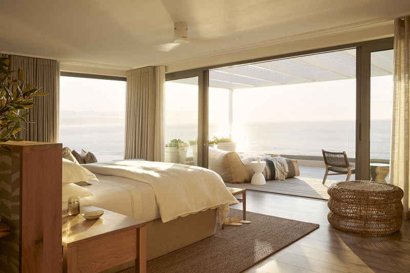 The architectural style of the building, designed by Wessel van Dyk, is a testament to its refinement, boasting clean lines and an abundance of natural light. This, together with its elevated position, creates a refreshing sense of openness that harmoniously integrates with the awe-inspiring 180-degree views and the adjacent beach.