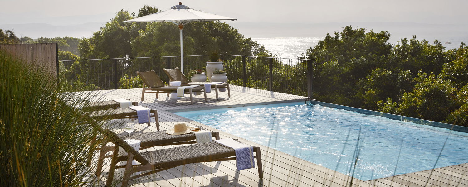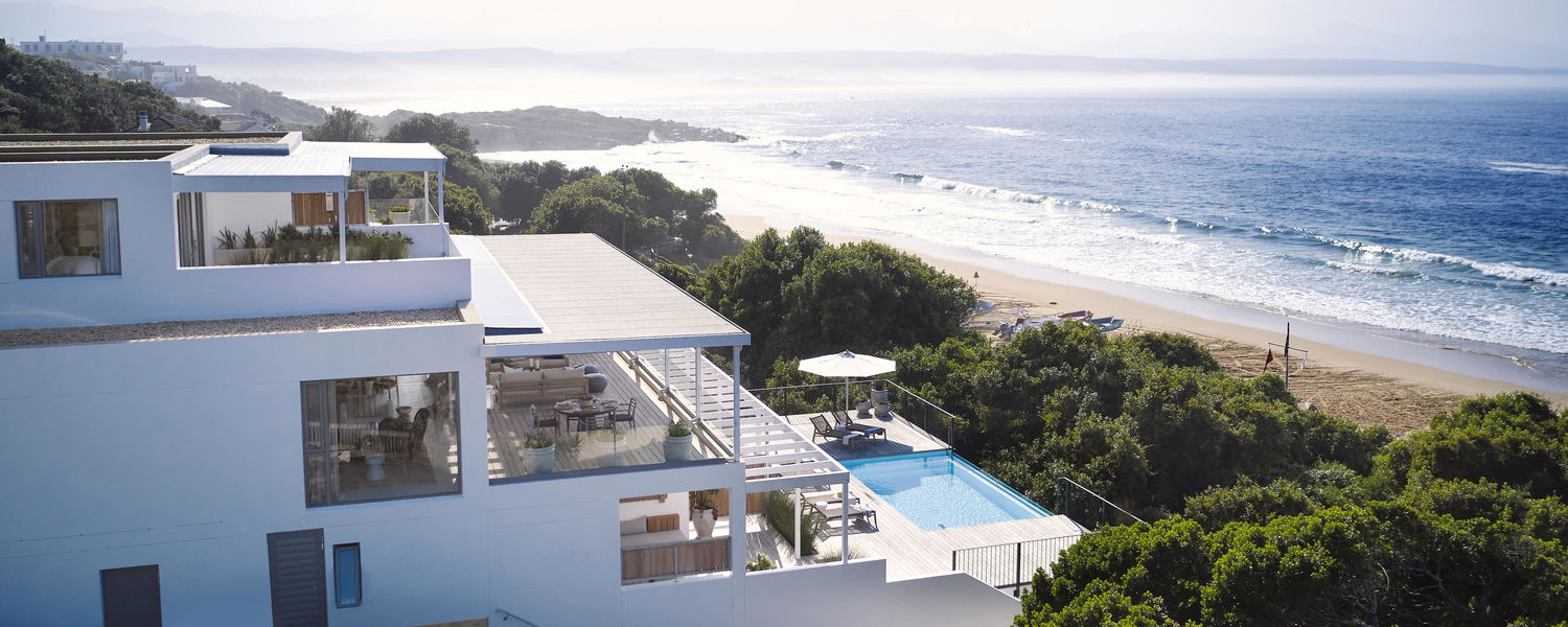 Perched on a stone ridge along the Central Beach front of Plettenberg Bay, built by Howard Walker, stands as an exquisite and exclusive property.