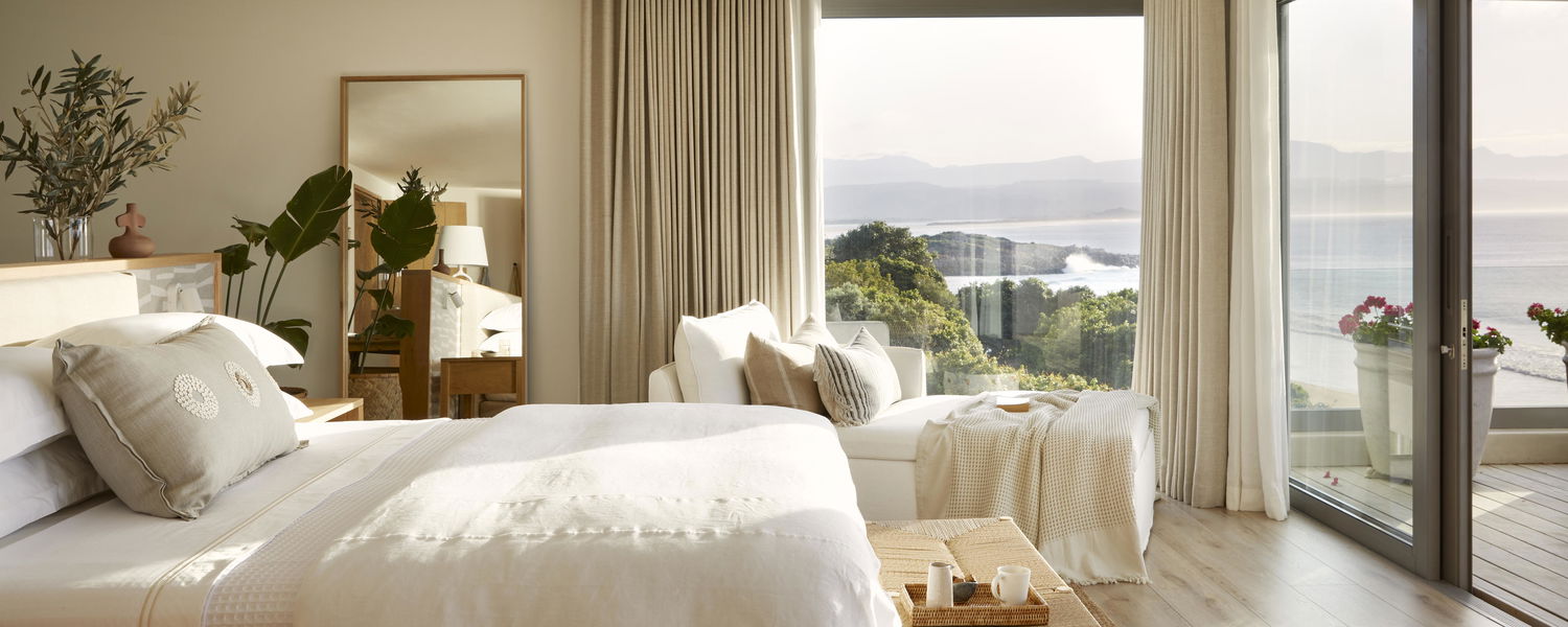 Spectacular sunrises over the Indian Ocean grace the horizon, adorned by the breathtaking presence of Formosa Peak, the majestic pinnacle of the Tsitsikamma Mountain range, to your left, while the protected Robberg Peninsula stands as a resolute guardian on your right.